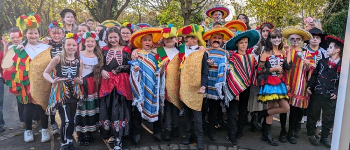 Hola! In year six, we had a fabulous Mexico enrichment day. We enjoyed doing some Mexican artwork, learned about Day of the Dead, created some sugar skulls, tasted some nachos (with hot chillies!), cooked fajitas and continued work on our DT pinatas! A fantastic day was had by all and there were some excellent costumes too!