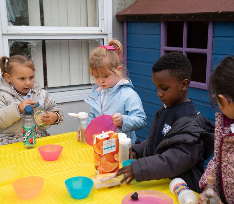 We place great emphasis on the importance of snack times and lunchtimes, where the children are encouraged to have conversations with their friends and with the staff. We promote independence by allowing children to select drinks or food and serve themselves.